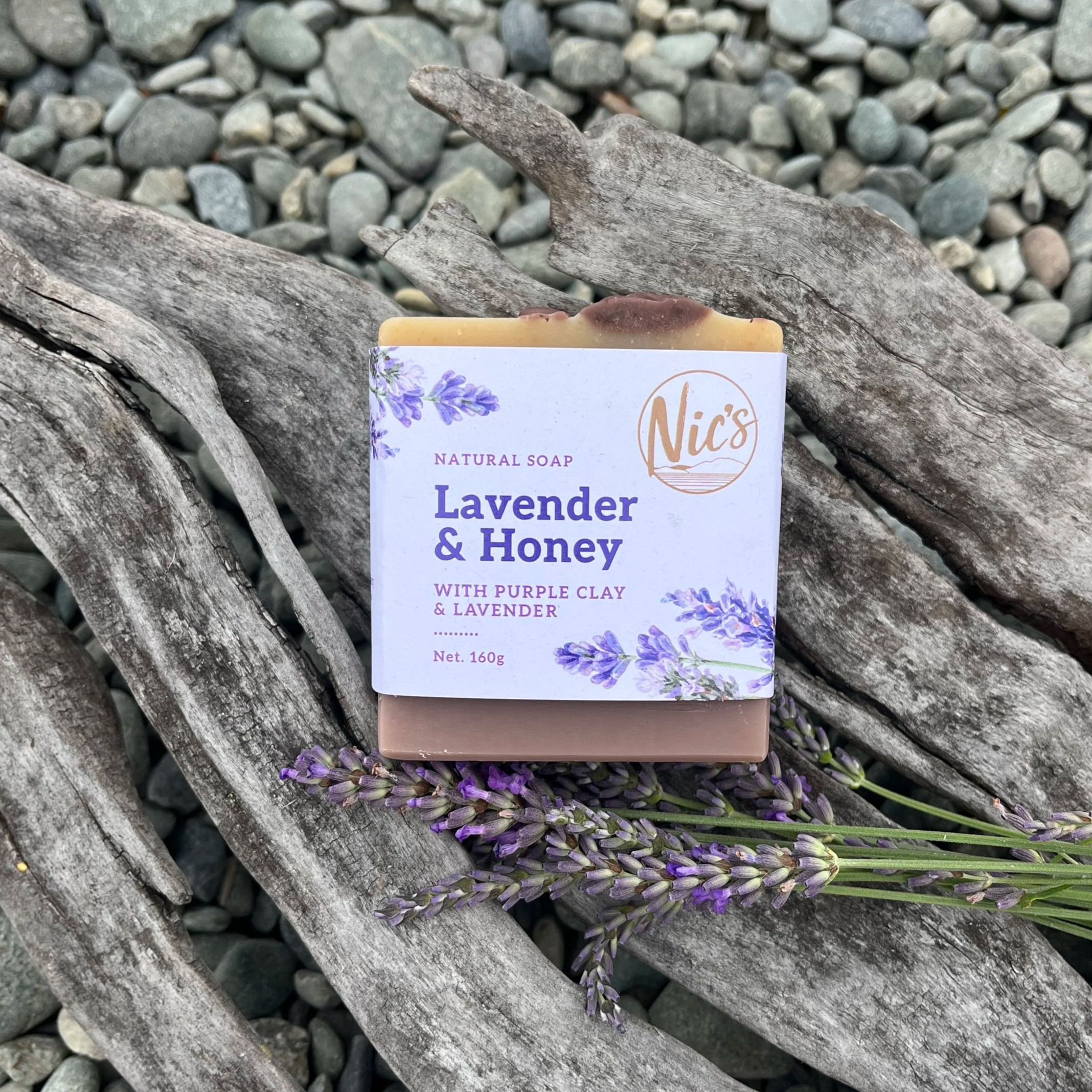 Indulge in the gentle calm of our Lavender & Honey Soap — where the purity of nature and the goodness of Nic’s Honey come together to nourish your skin and quiet your senses.